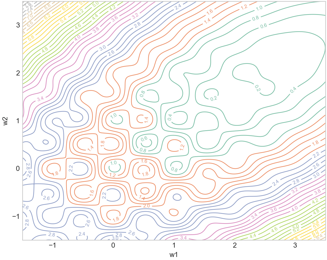 A while ago I had this idea of how we could post-hoc find such curriculums. Let’s say we have a dataset , and model . We first train till convergence via the standard stochastic minibatch to obtain . Then what we can do is look at the linear path: . This straight path has been analyzed in Ian Goodfellow et al’s work: Qualitatively characterizing neural network optimization problems, where the authors find there is a monotonic nature to the loss on that straight path. Moreover, this is the shortest path. This raises the question, how could we have followed this path instead? Well, each datapoint defines its own loss landscape, and we often just average them at random. To simplify things, let’s consider just 2 loss landscapes, the left one being the “easy” one and middle right one is “hard”, and the right one is the averaged (with equal weighting) final landscape.